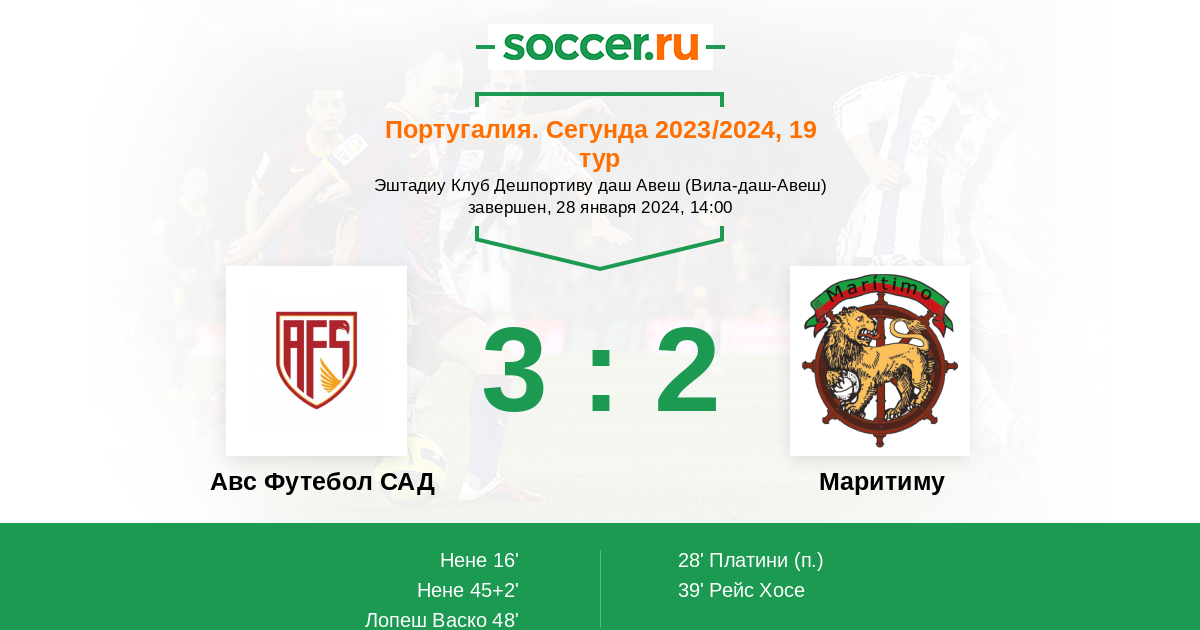 Протокол матча Авс Футебол САД против Маритиму