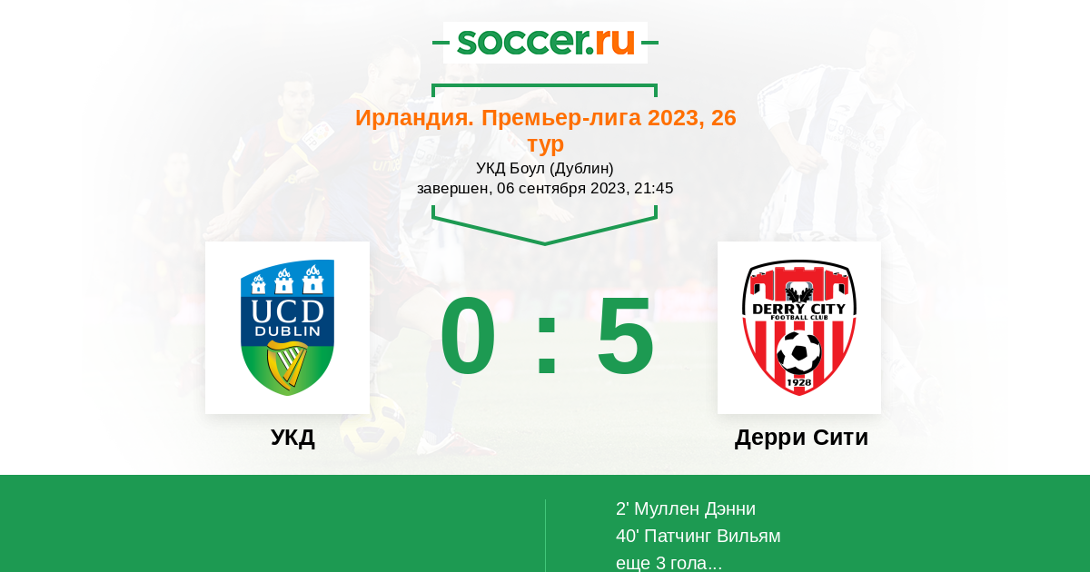 Протокол матча УКД против Дерри Сити