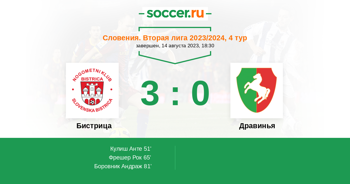 Протокол матча Бистрица против Дравинья