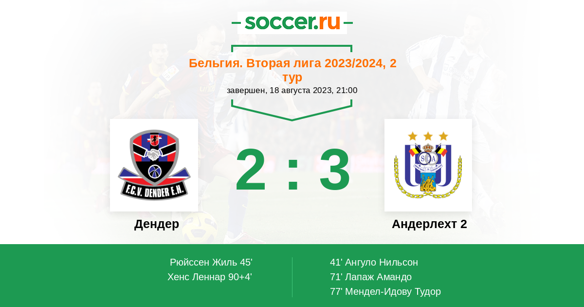 Протокол матча Дендер против Андерлехт 2