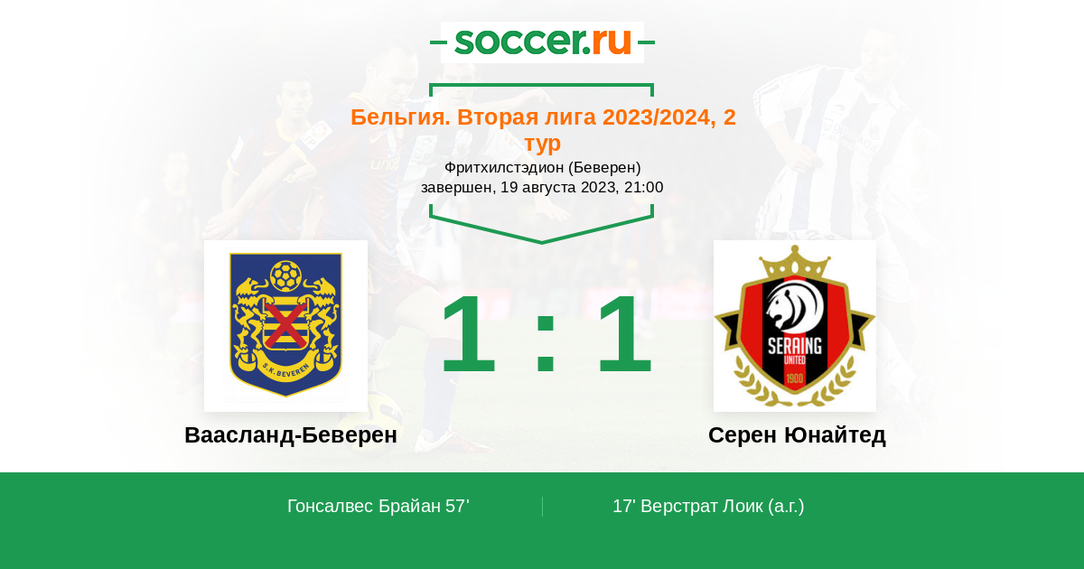 Протокол матча Ваасланд-Беверен против Серен Юнайтед