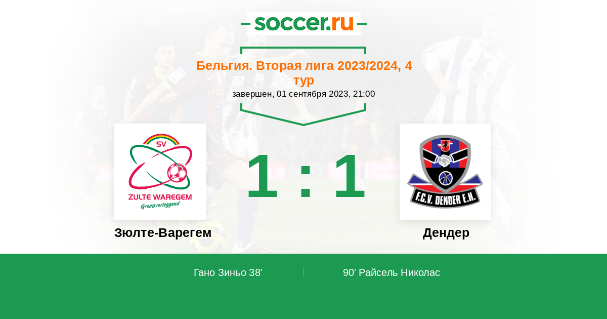 Протокол матча Зюлте-Варегем против Дендер