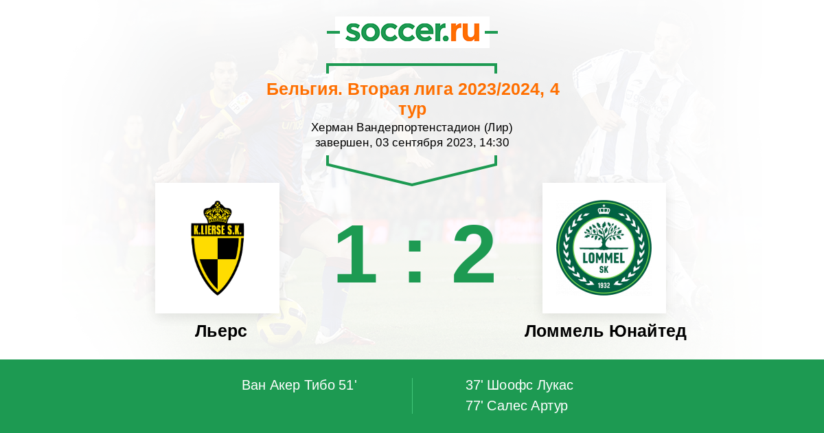 Протокол матча Льерс против Ломмель Юнайтед