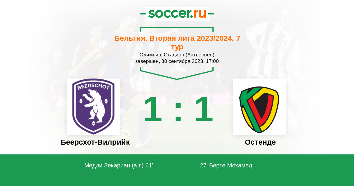 Протокол матча Беерсхот-Вилрийк против Остенде