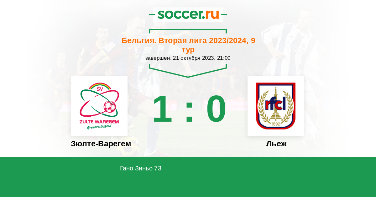 Протокол матча Зюлте-Варегем против Льеж