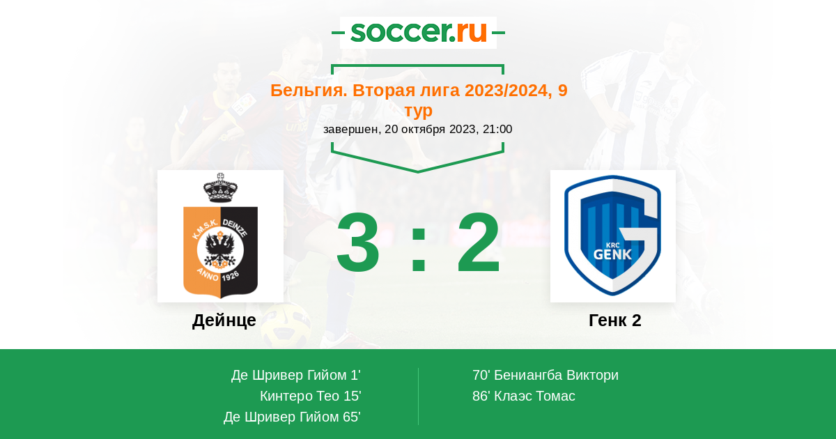 65' (3:0) Де Шривер Гийом (8) (Янссенс Кристоф (16))