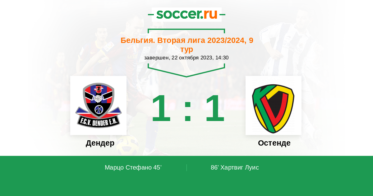 Протокол матча Дендер против Остенде