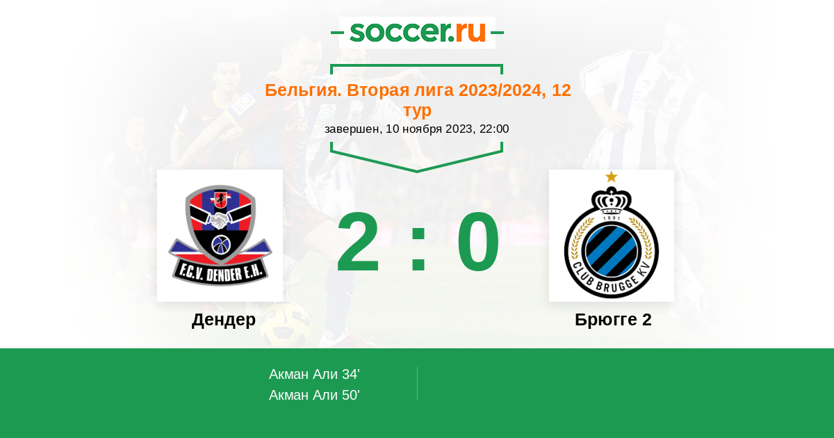 Протокол матча Дендер против Брюгге 2