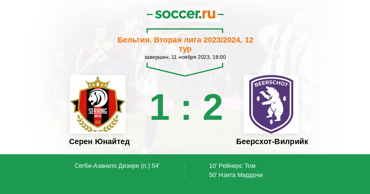 Протокол матча Серен Юнайтед против Беерсхот-Вилрийк