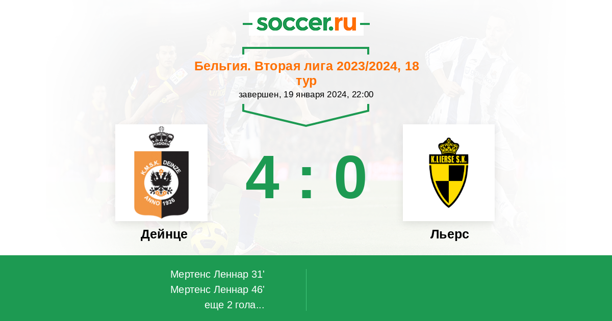 Протокол матча Дейнце против Льерс