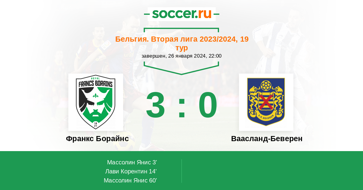 Протокол матча Франкс Борайнс против Ваасланд-Беверен