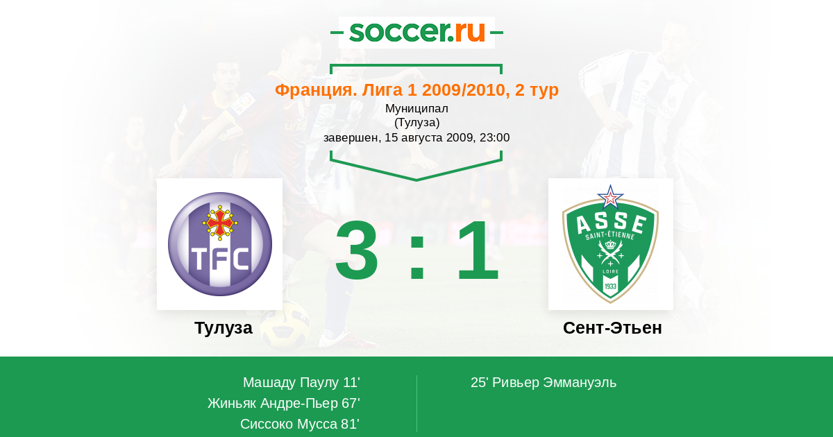 Протокол матча Тулуза против Сент-Этьен