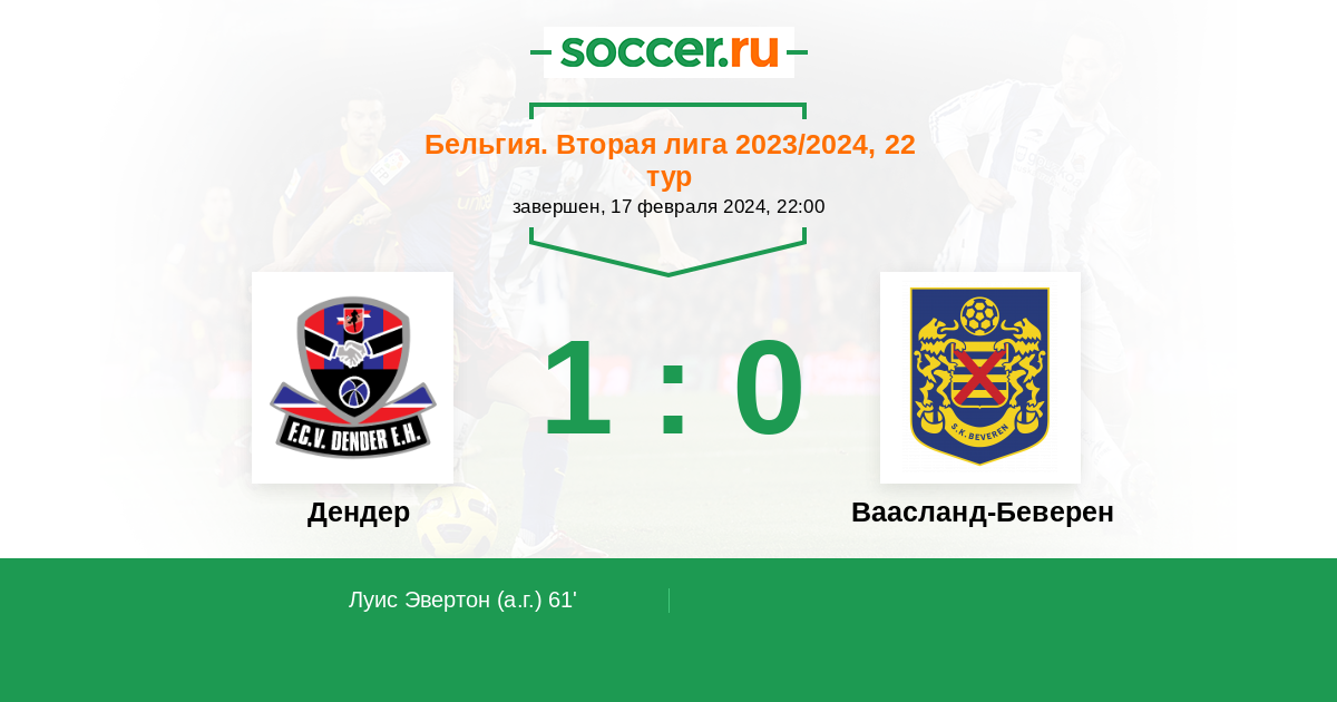 Протокол матча Дендер против Ваасланд-Беверен