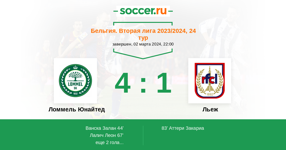 Протокол матча Ломмель Юнайтед против Льеж