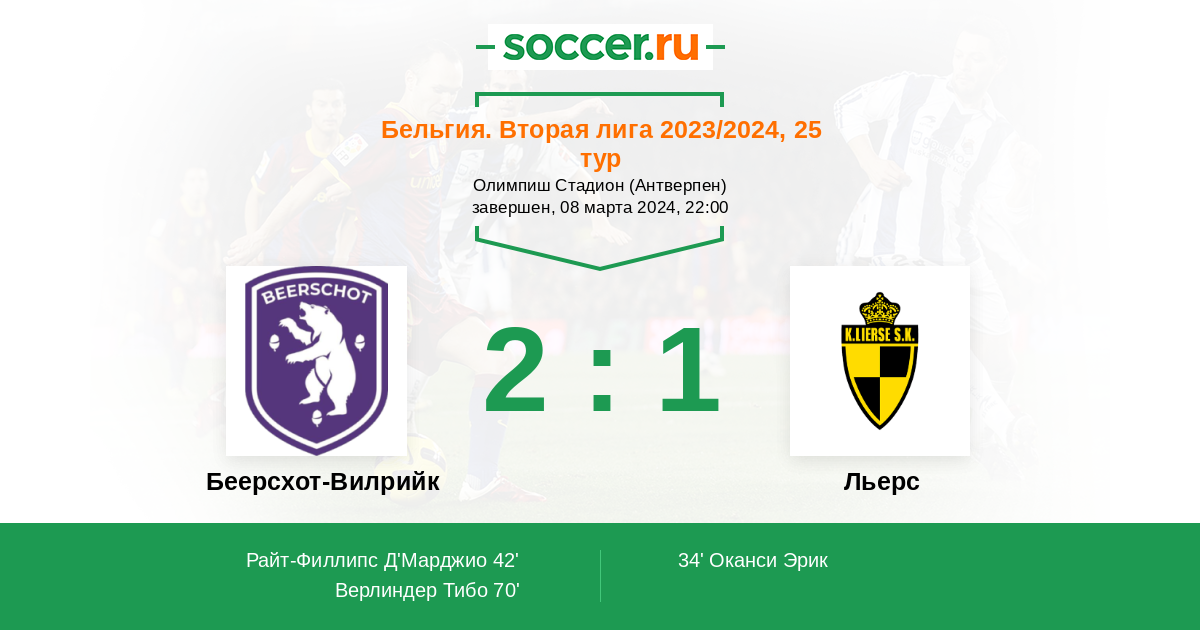 Протокол матча Беерсхот-Вилрийк против Льерс