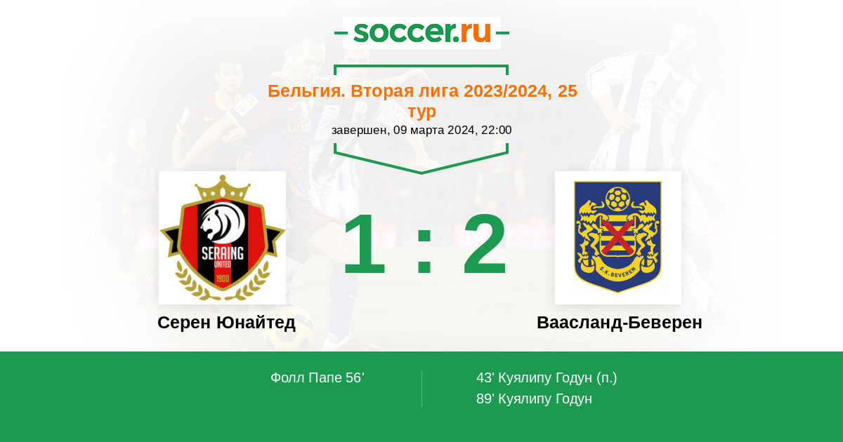 Протокол матча Серен Юнайтед против Ваасланд-Беверен