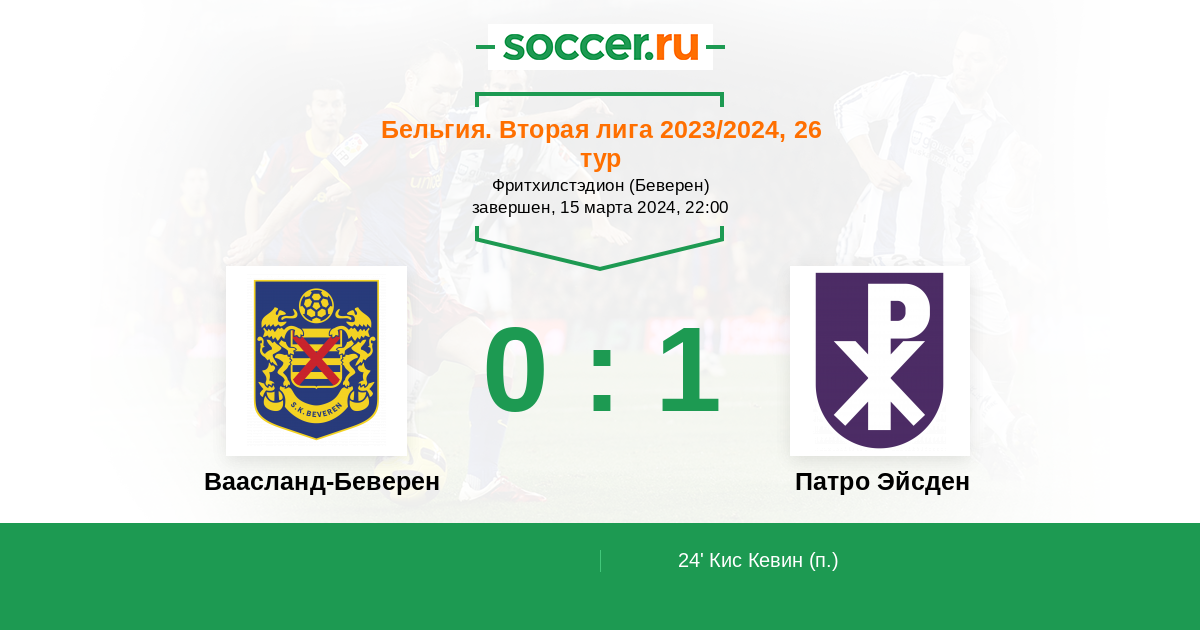 Протокол матча Ваасланд-Беверен против Патро Эйсден