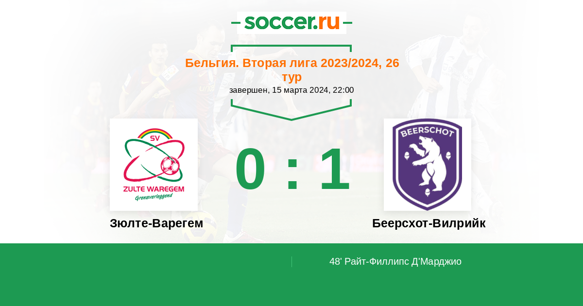 Протокол матча Зюлте-Варегем против Беерсхот-Вилрийк