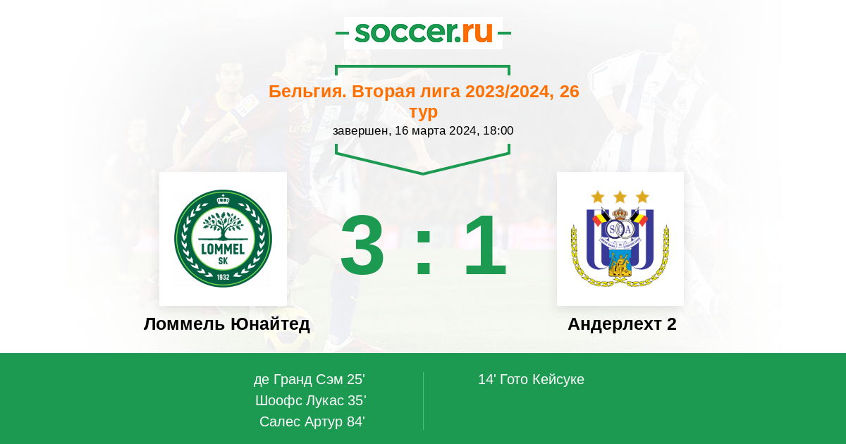 Протокол матча Ломмель Юнайтед против Андерлехт 2