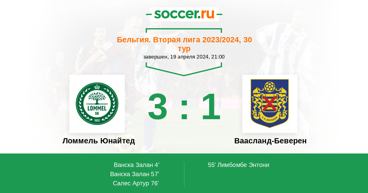 Протокол матча Ломмель Юнайтед против Ваасланд-Беверен