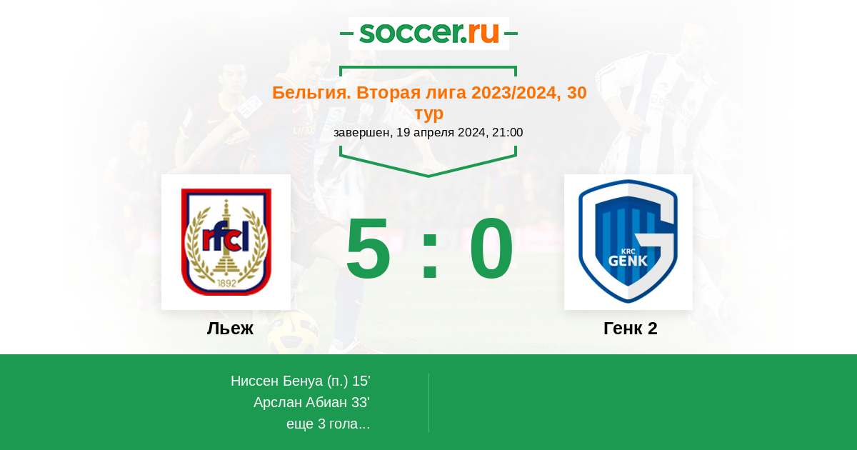 Протокол матча Льеж против Генк 2