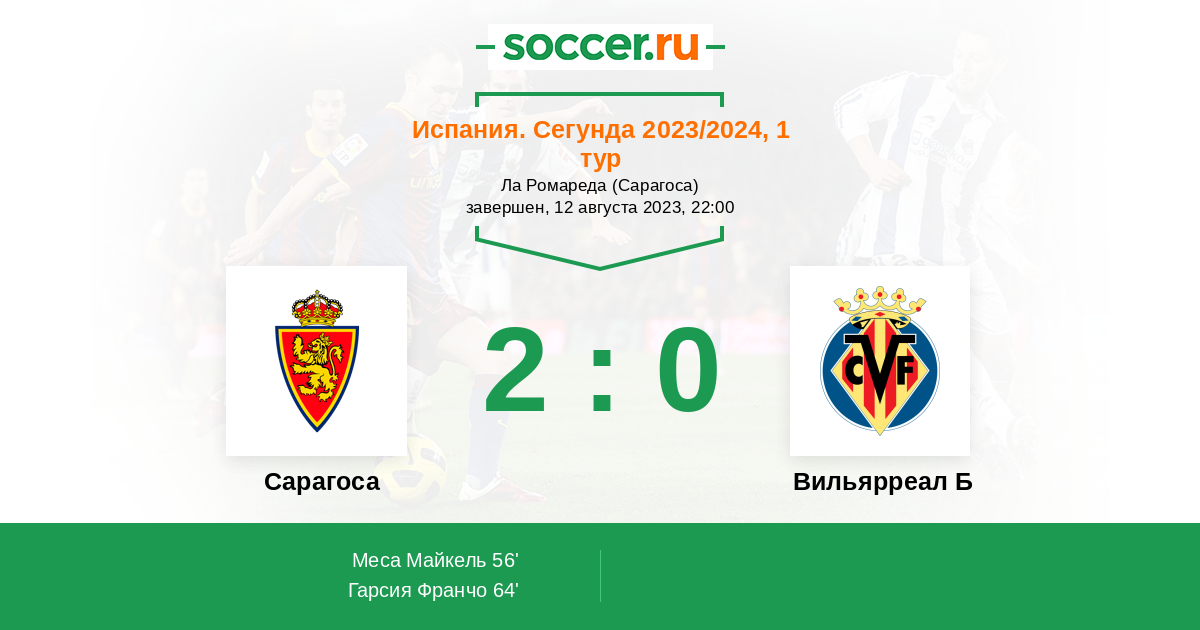 Протокол матча Сарагоса против Вильярреал Б