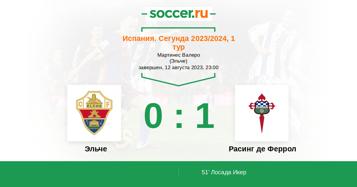 Протокол матча Эльче против Расинг де Феррол