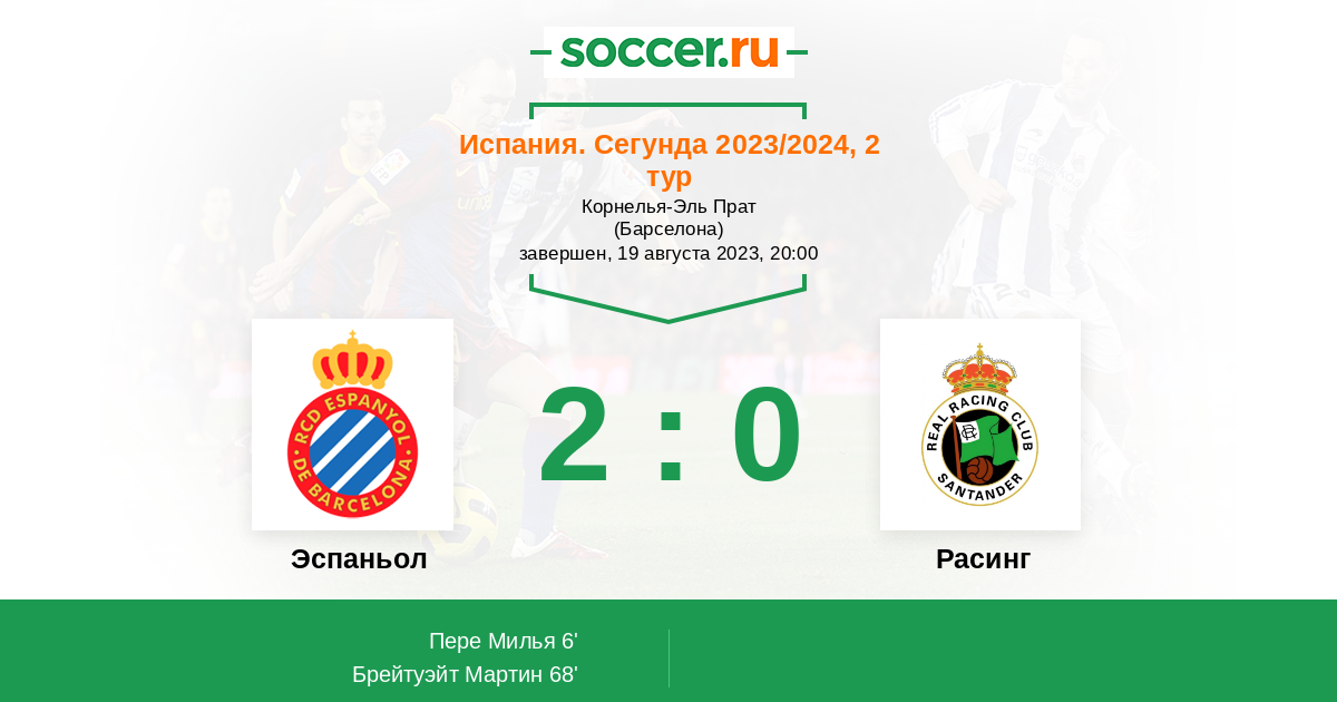 Протокол матча Эспаньол против Расинг