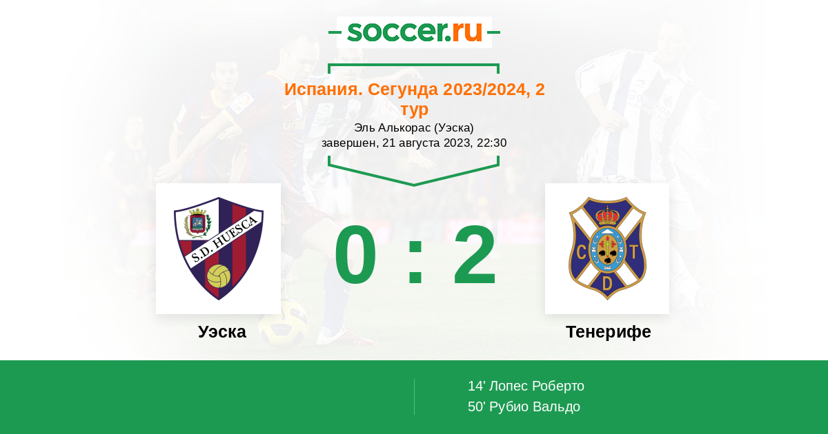 Протокол матча Уэска против Тенерифе