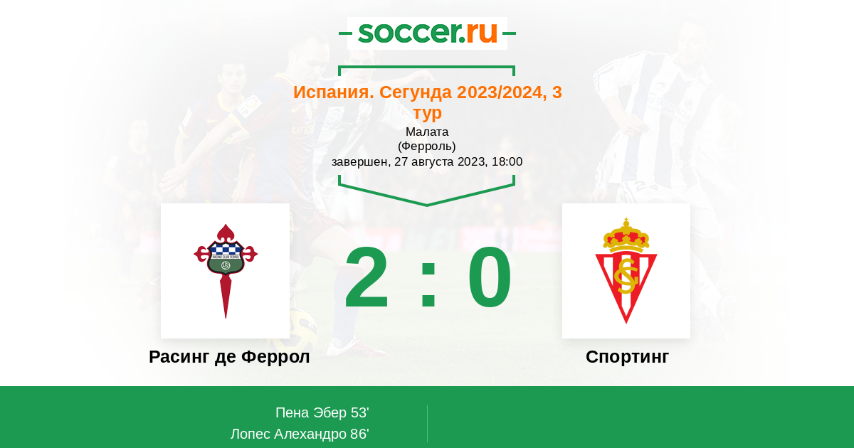 Протокол матча Расинг де Феррол против Спортинг