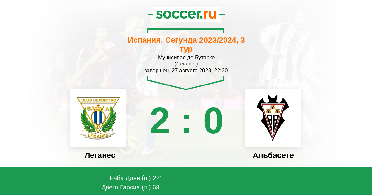 Протокол матча Леганес против Альбасете