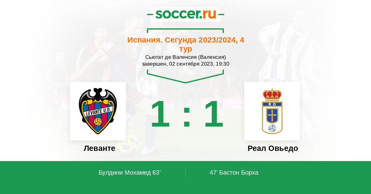 Протокол матча Леванте против Реал Овьедо