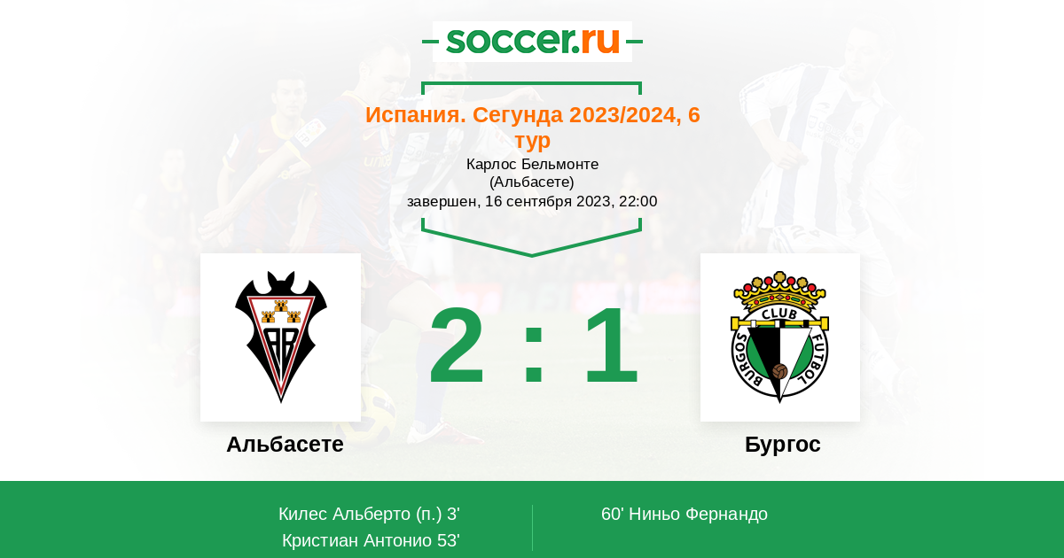 Протокол матча Альбасете против Бургос