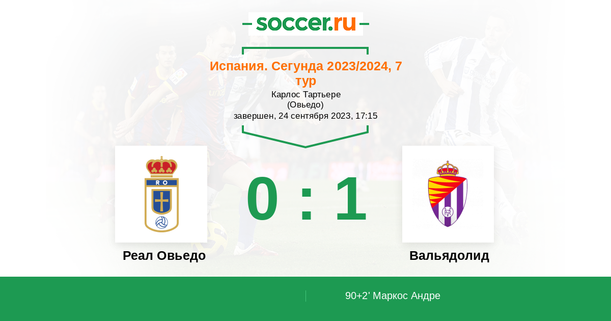Протокол матча Реал Овьедо против Вальядолид
