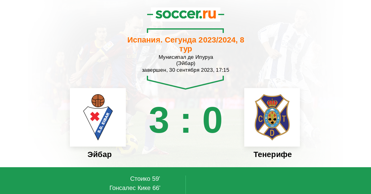 Протокол матча Эйбар против Тенерифе
