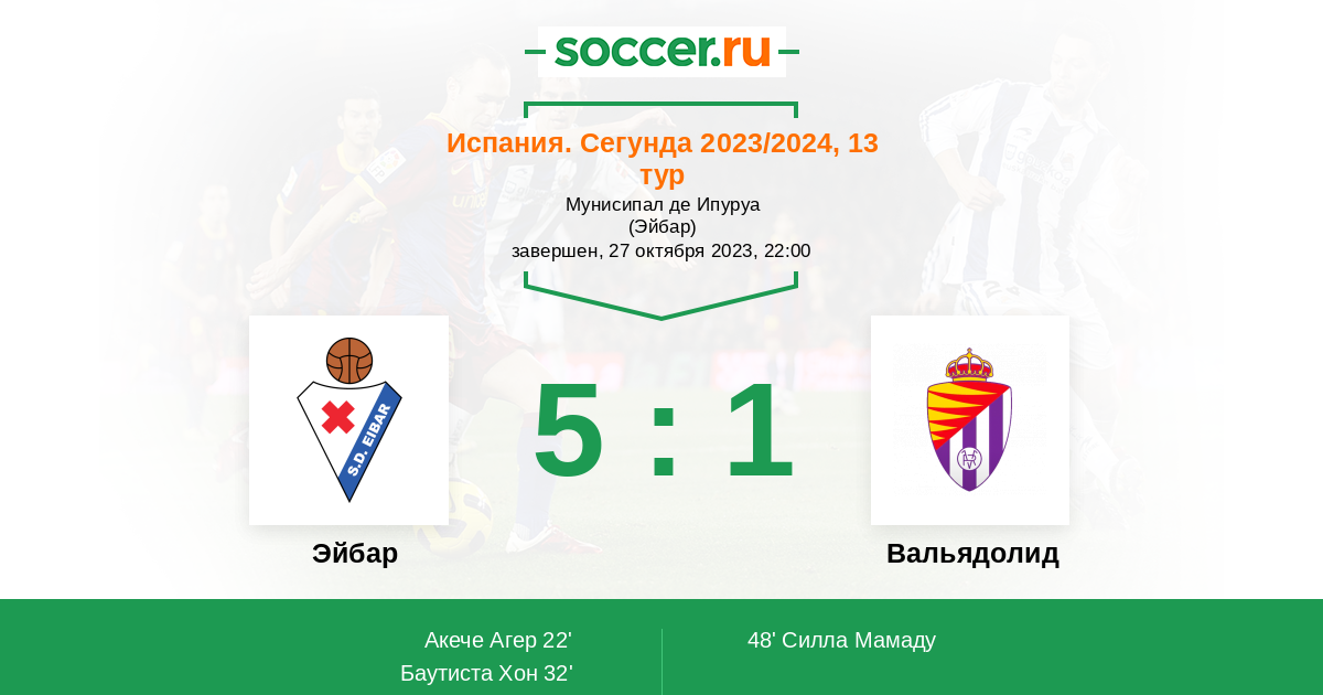 Протокол матча Эйбар против Вальядолид