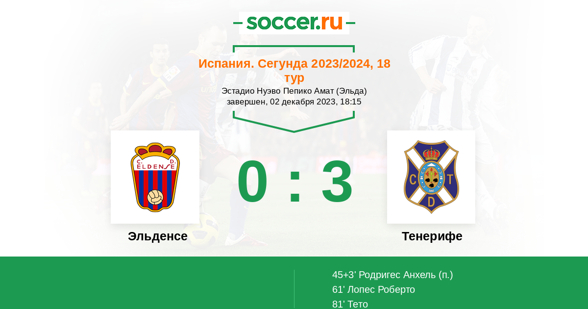 Протокол матча Эльденсе против Тенерифе