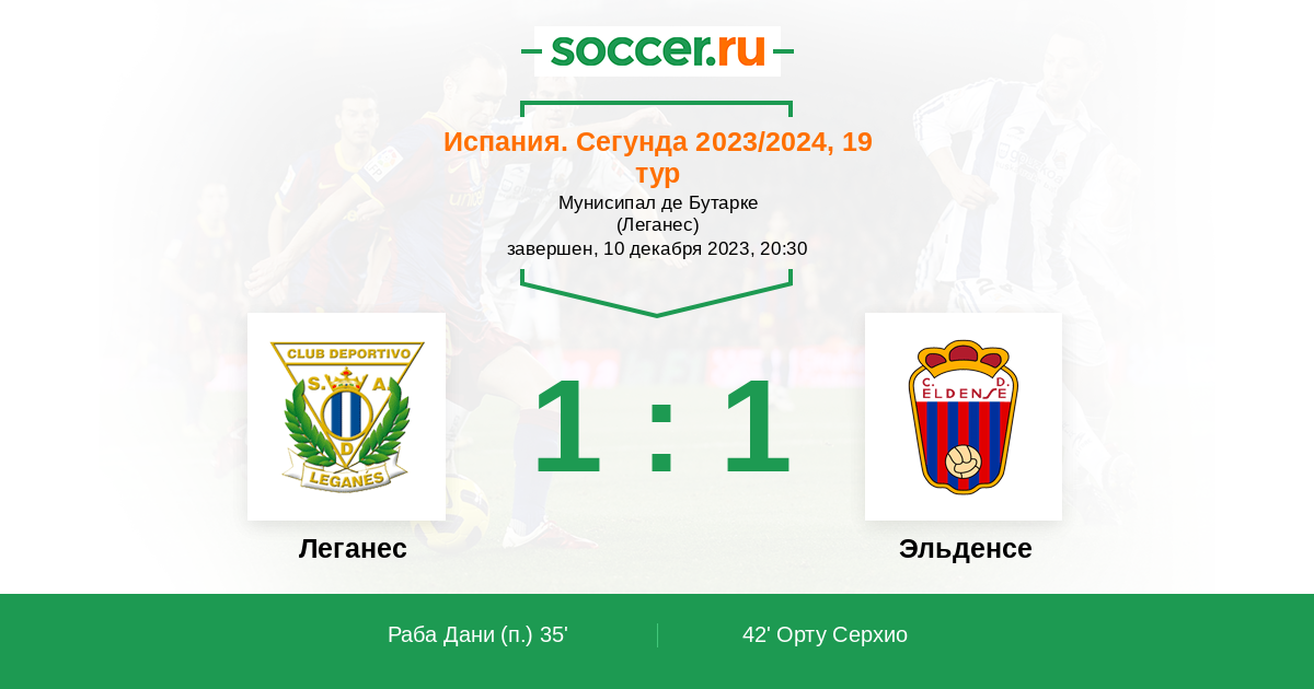 Протокол матча Леганес против Эльденсе