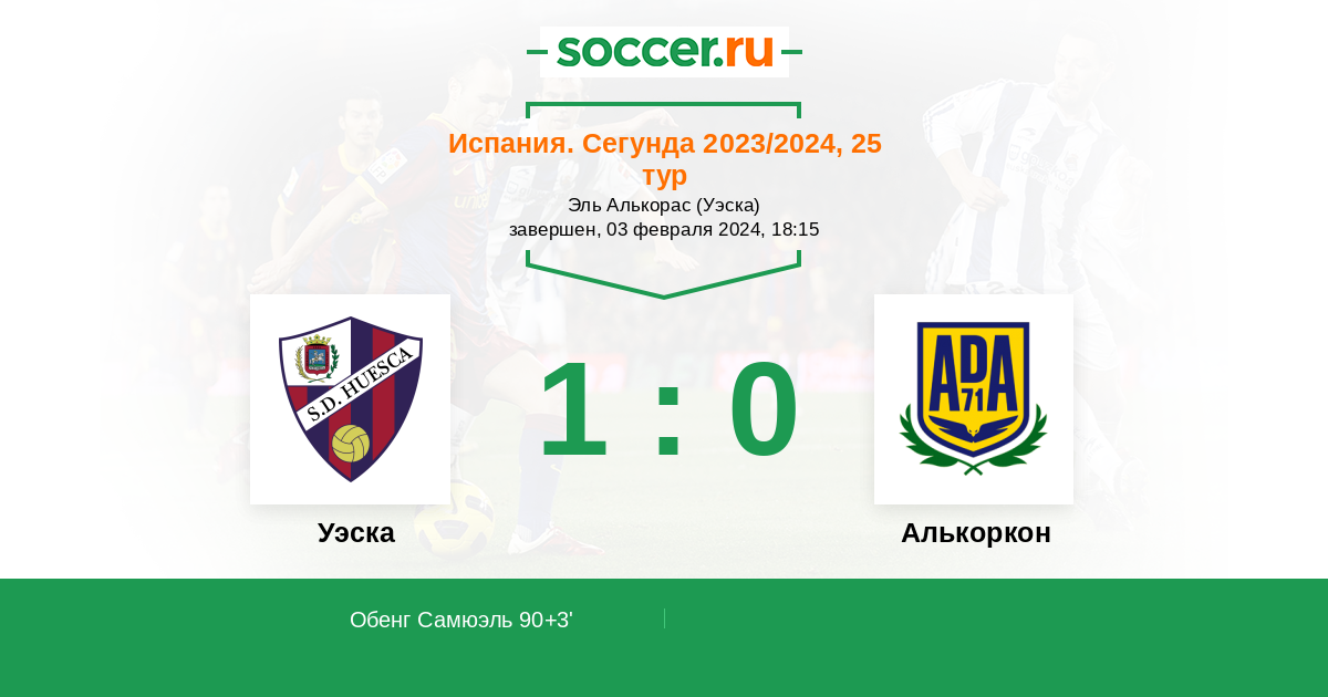 Протокол матча Уэска против Алькоркон
