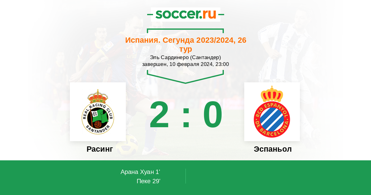 Протокол матча Расинг против Эспаньол