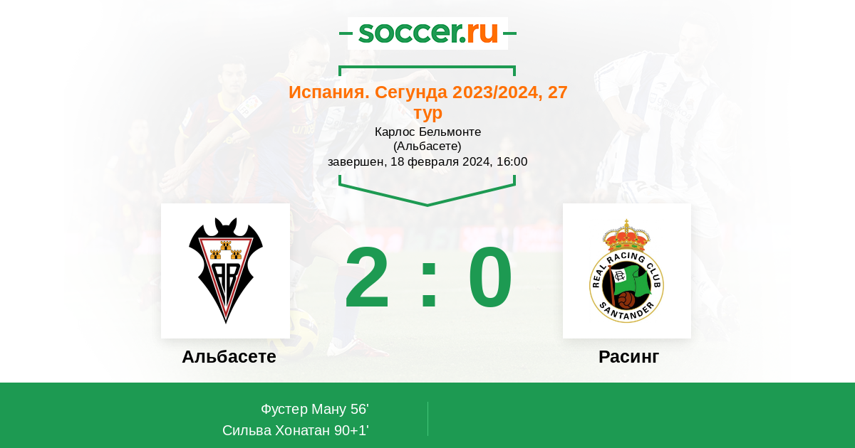 Протокол матча Альбасете против Расинг
