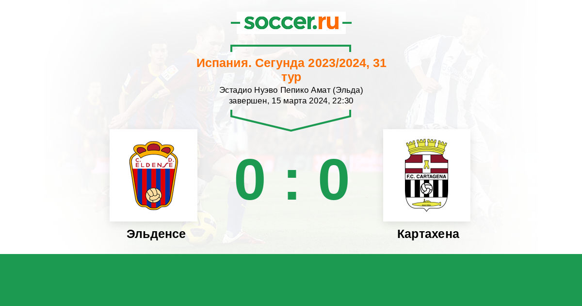 Эльденсе - Картахена ! Встречаются две команды из нижний половины турнирной таблицы . И если хозяева могут чувствовать себя при этом относительно спокойно , то гостям надо действовать предельно осторожно и осмотрительно .