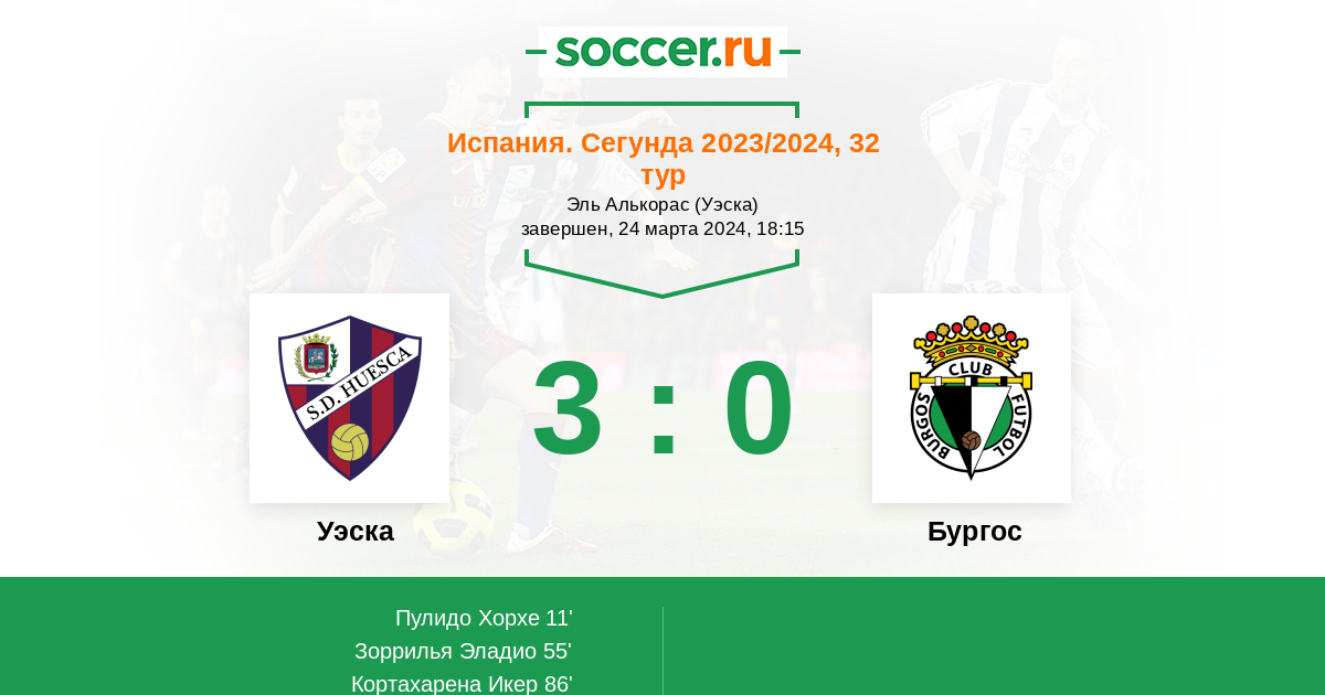 Протокол матча Уэска против Бургос