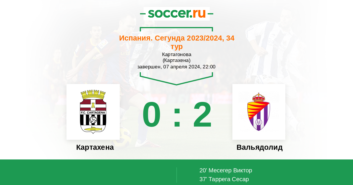 Протокол матча Картахена против Вальядолид
