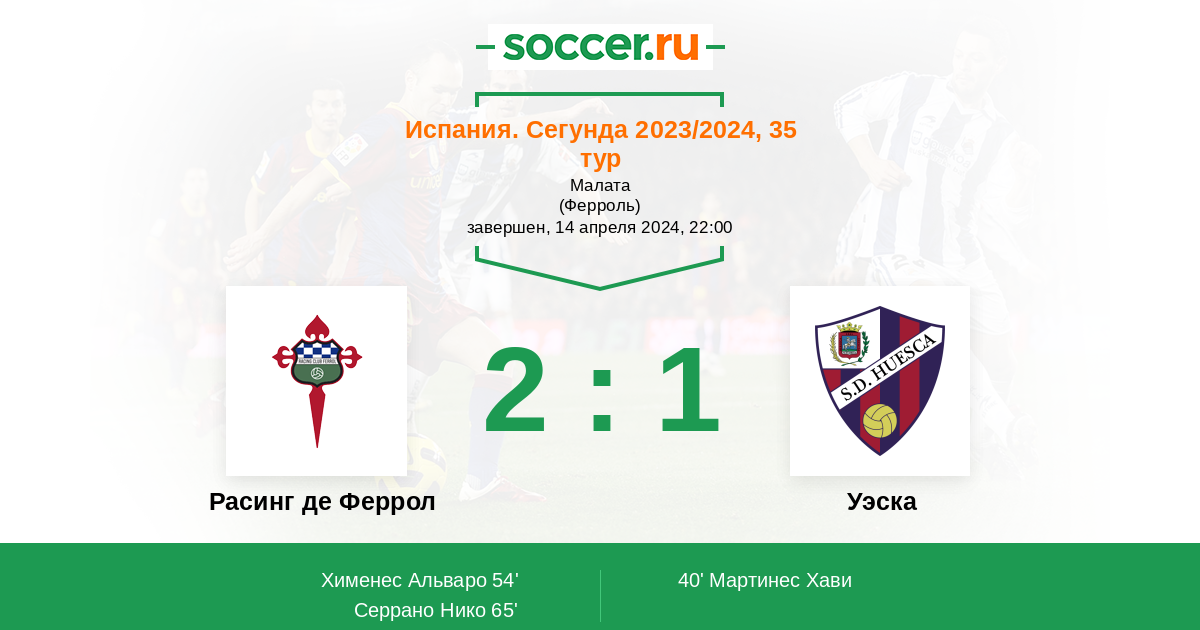 Протокол матча Расинг де Феррол против Уэска