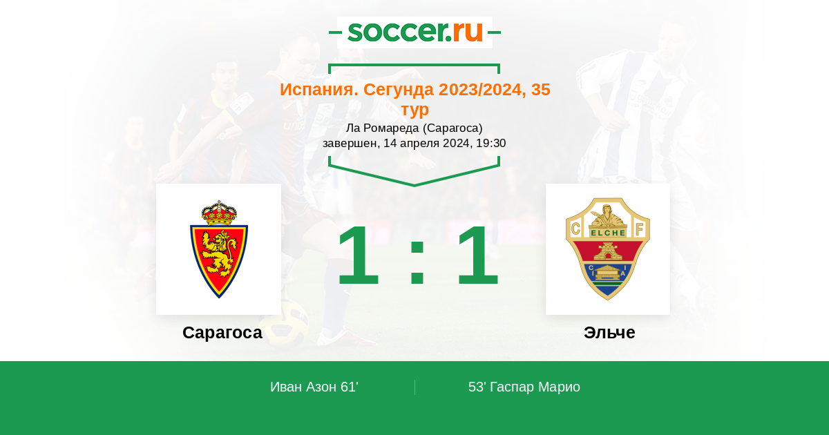 Протокол матча Сарагоса против Эльче