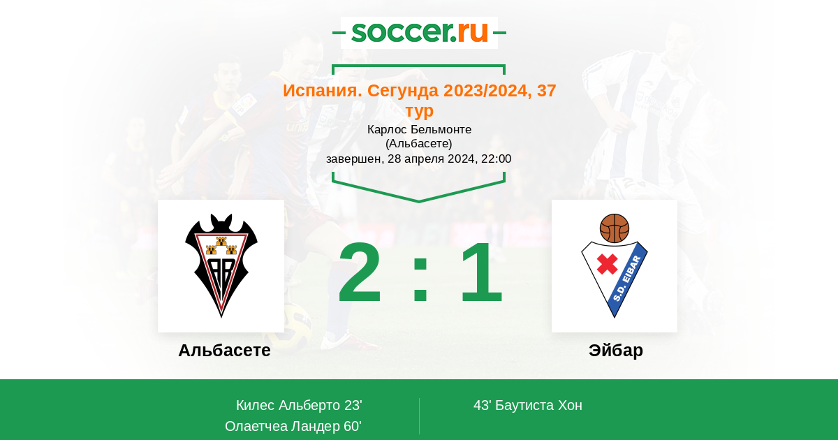 23' (1:0) Килес Альберто (21) (Гарсия Хуанма (7))