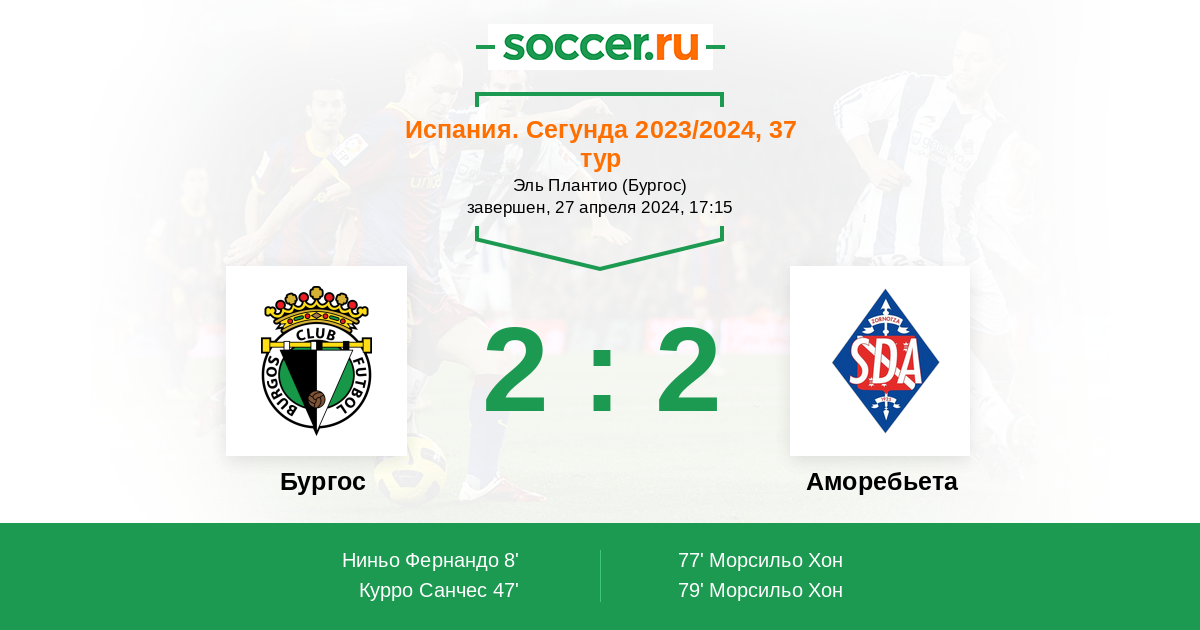 Протокол матча Бургос против Аморебьета