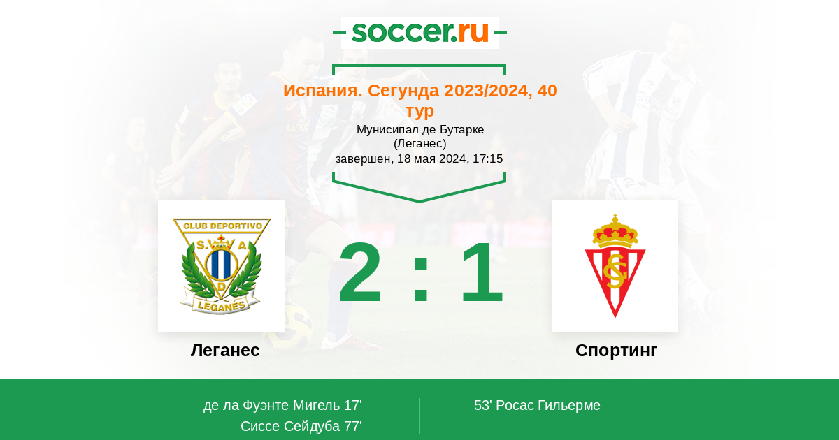 Протокол матча Леганес против Спортинг