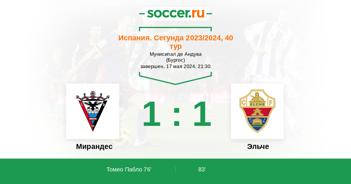 Протокол матча Мирандес против Эльче
